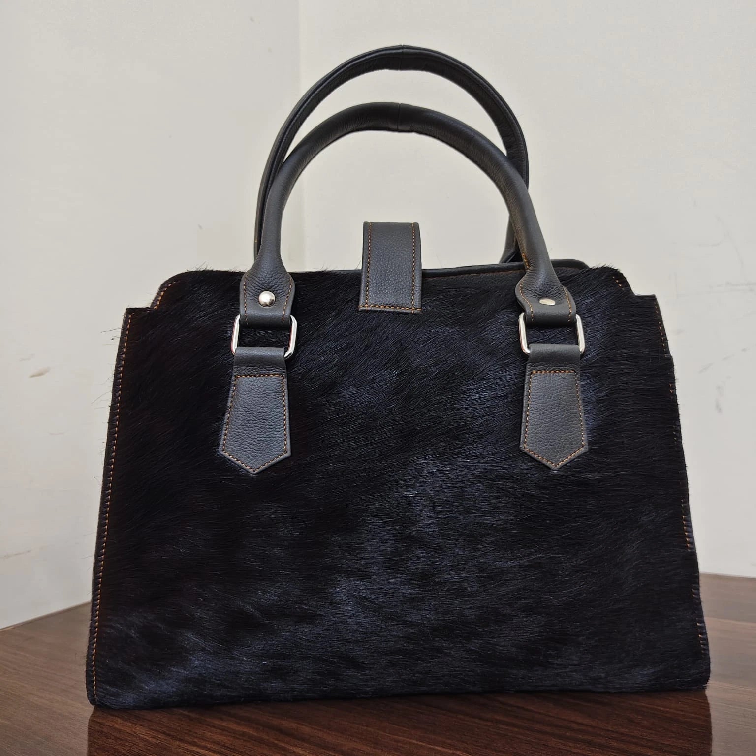 • Genuine cowhide bags made with real pony hair hide and premium black leather for a rich hair on cow hide purse texture