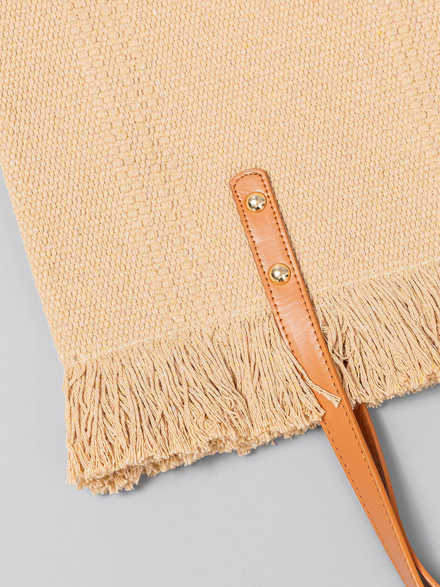 Your getaway style is with our vacation handbag. Specifically designed for the modern traveler, this canvas tote bag combines a casual aesthetic with a luxury feel. The striking fringe-trim neckline adds a touch of bohemian flair, making it the ultimate summer bag or beach purse. Whether you are packing for a resort stay or a busy day in the city, its spacious interior and sturdy construction ensure you never have to leave an essential behind. This versatile piece bridges the gap between a functional carry-all and a high-fashion accessory, making it a must-have for your seasonal wardrobe.
