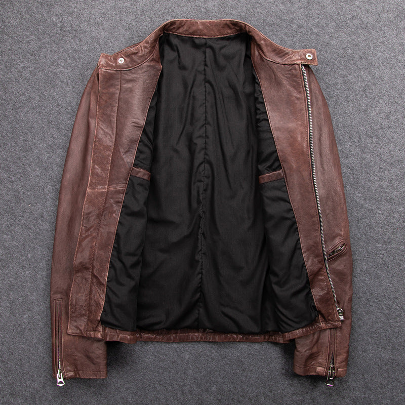 • Slim fit men leather jacket designed with a clean short length that sits neatly at the waist for a sharp daily silhouette