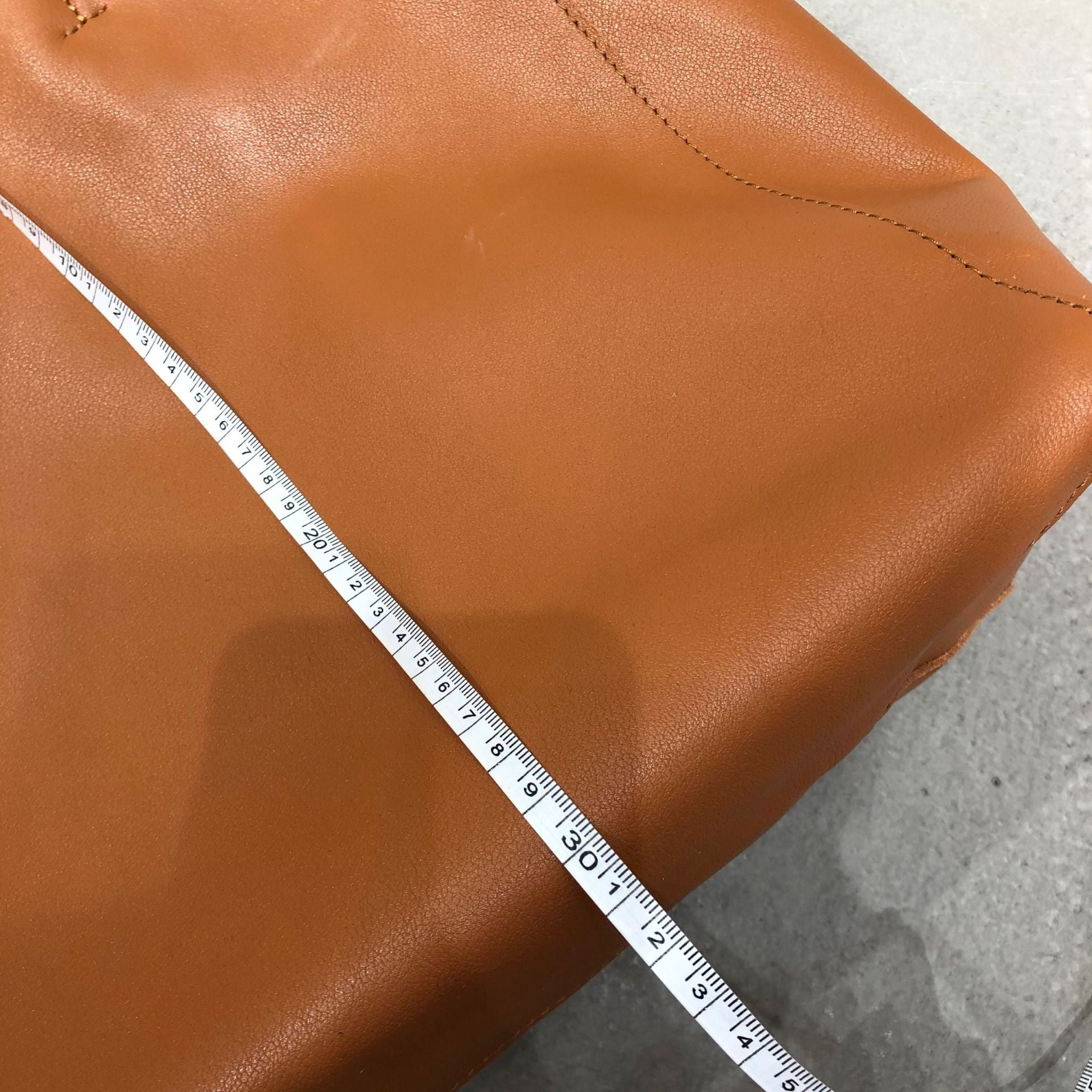 - Leather tote purse with reinforced shoulder straps stitched directly into the body for stable weight support