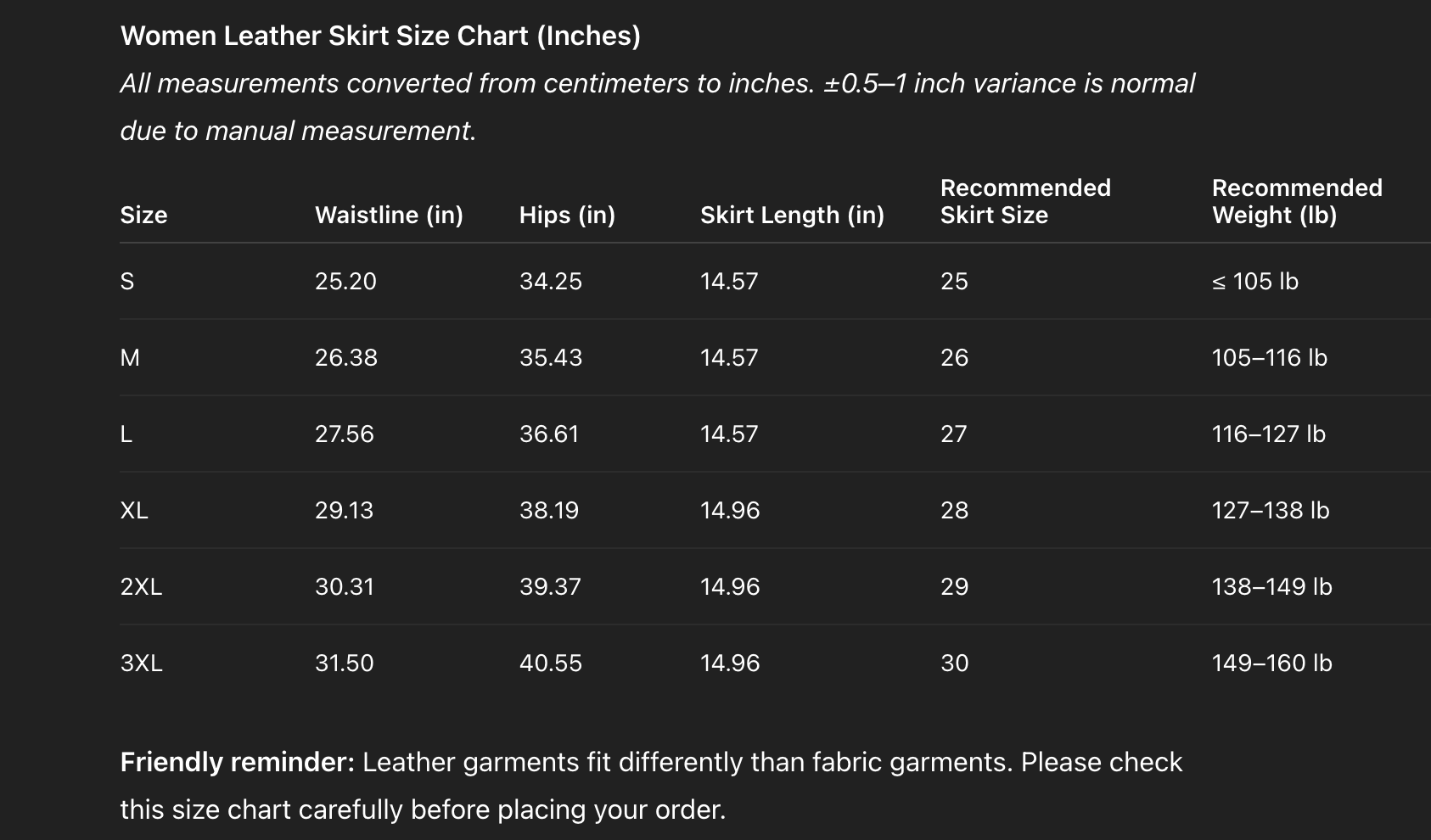 • Soft sheepskin finish gives a smooth feel for a women leather skirt that wears comfortably