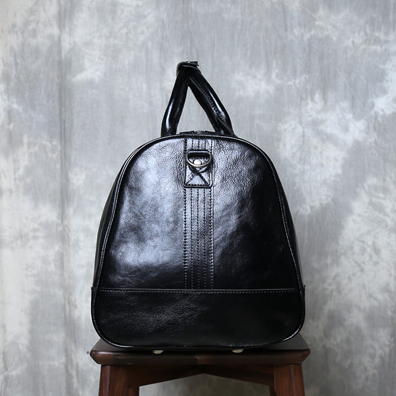 • Wide main compartment fits water bottles, books, and folded outfits, offering true large capacity for leather travel bag needs