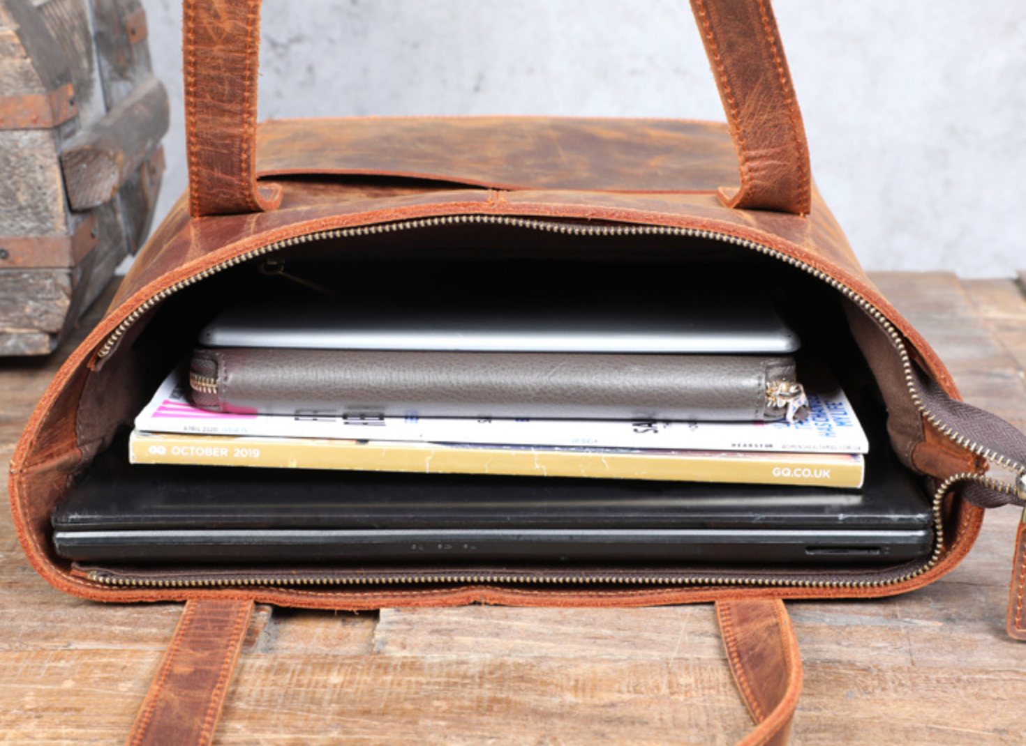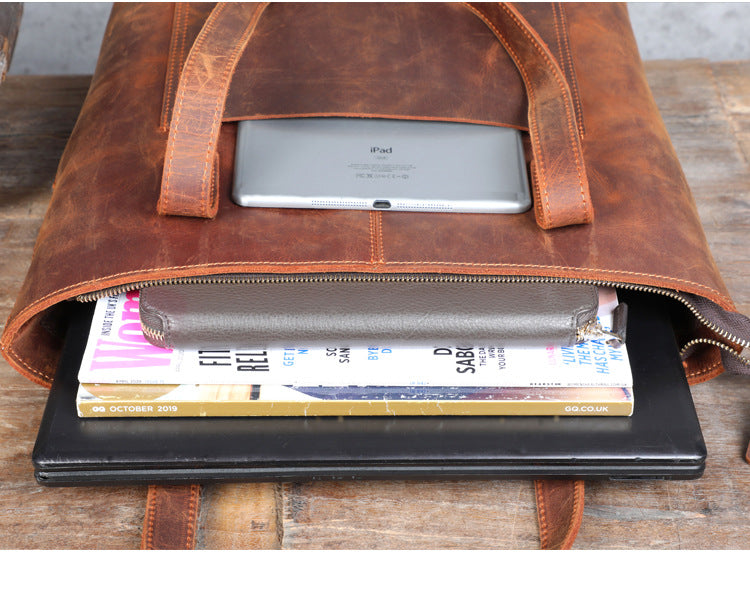 Women Leather Tote Bag in Crazy Horse Top-Grain Cowhide