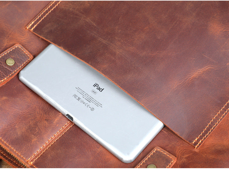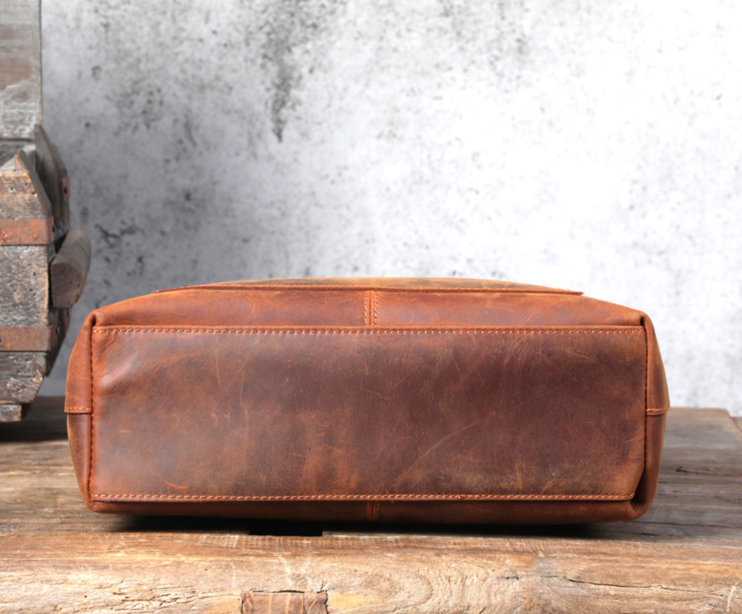 • Double-layered cowhide shoulder straps shown in photos give extra stability for heavier loads in women leather office bags.
