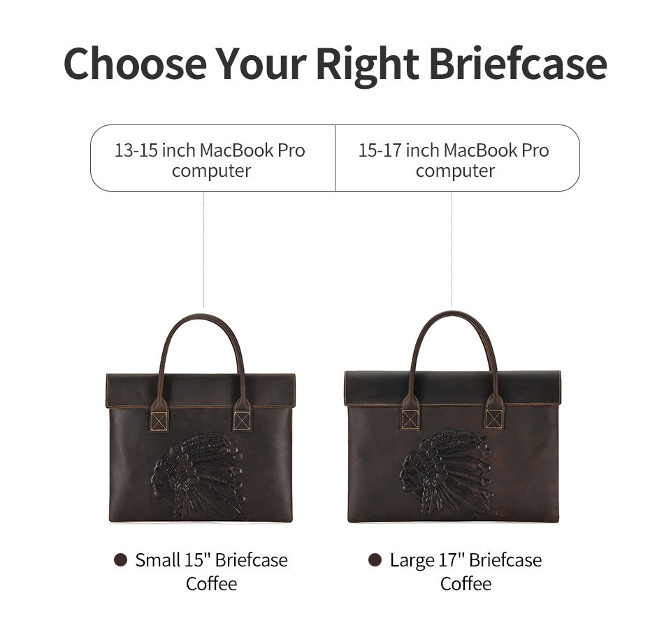 • Large leather laptop briefcase fits 15–17 inch macbook pro and a4 folder