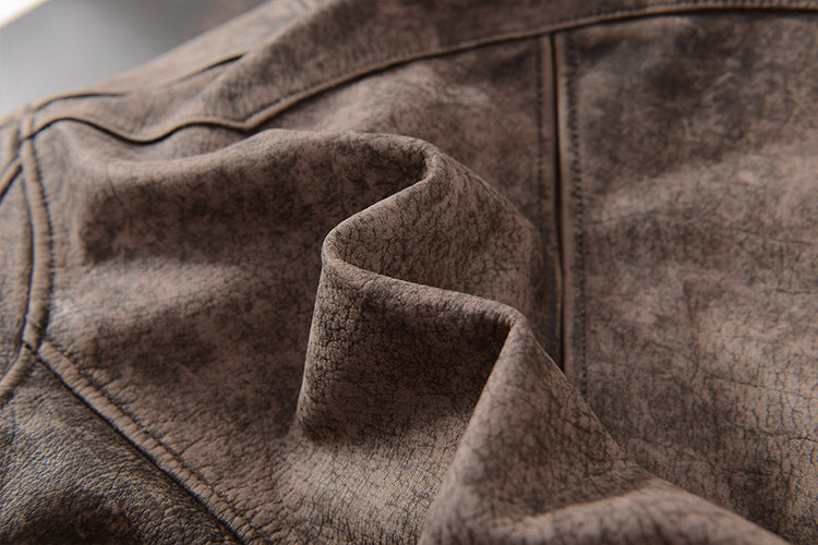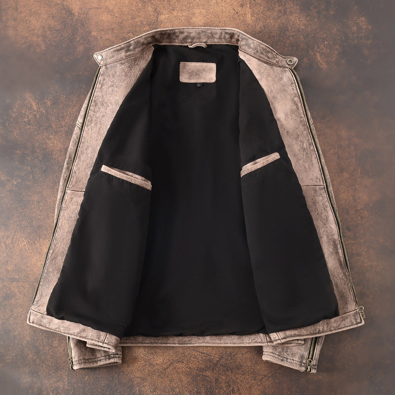 - Men leather jacket made from uncoated genuine cowhide with a worn, matte surface