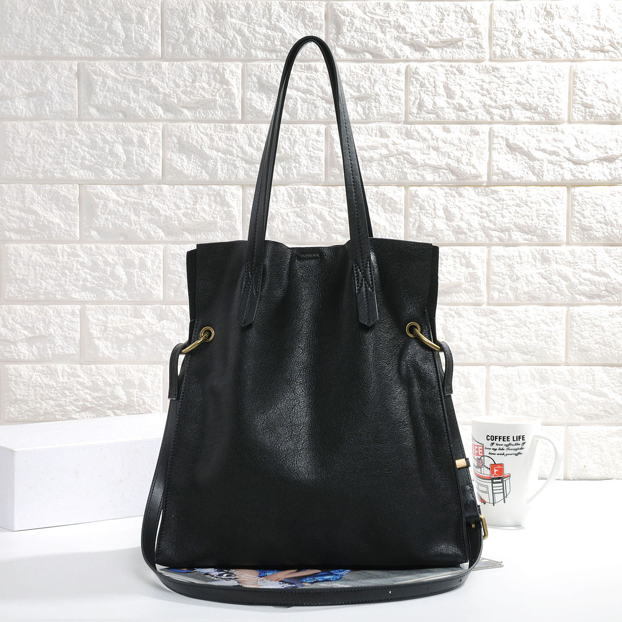 Women Genuine Leather Bucket Shoulder Tote Bag