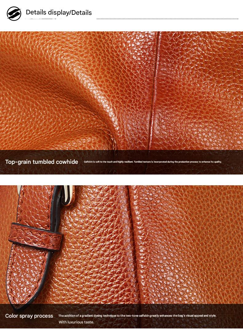 • Made from genuine leather bags for ladies using two-tone cowhide with gradient color-spray finishing visible in close-up image details.