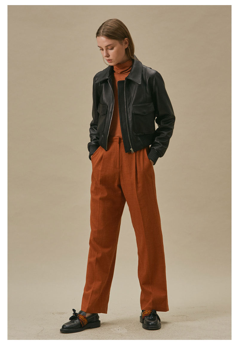 • Ribbed hem and rib-knit cuffs exactly as shown, adding secure wrist grip and keeping the black jacket womens leather style shaped and neat.