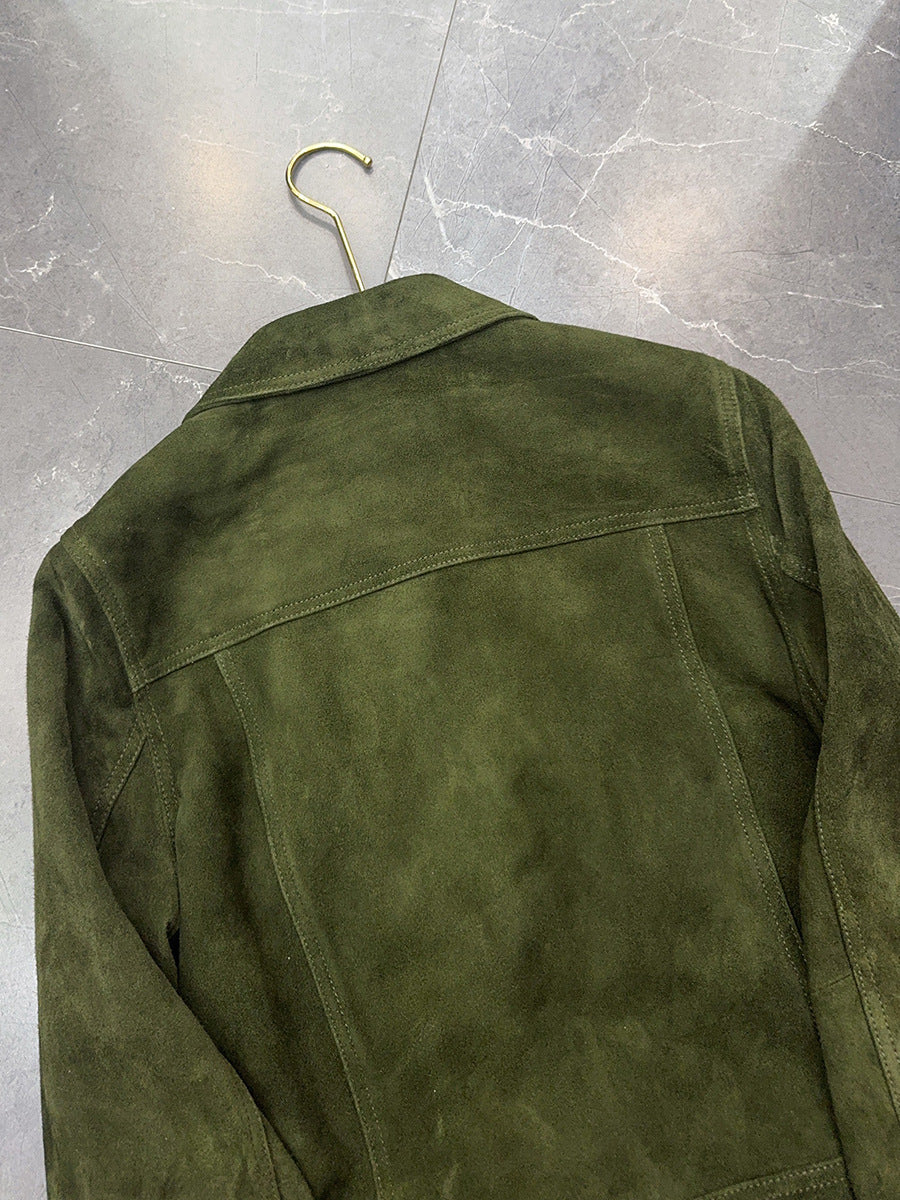 • Goatskin suede outer with soft nap and rich olive tone for autumn and winter wear